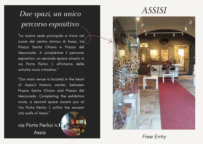 Nel centro storico di Assisi Assisinarte presenta una mostra d'arte contemporanea con artisti internazionali.